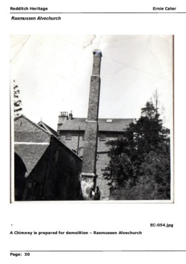 Redditch Heritageedditch Heritage E R Ernie Caterrnie Cater Rasmussen Alvechurch - EC-054.jpg A Chimney is prepared for demolition – Rasmussen Alvechurch Page: 30age: 30 P