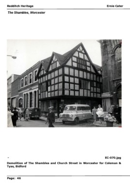 Redditch Heritageedditch Heritage E R Ernie Caterrnie Cater The Shambles, Worcester - EC-070.jpg Demolition of The Shambles and Church Street in Worcester for Coleman & Tyas, Bidford Page: 46age: 46 P