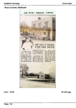 Redditch Heritageedditch Heritage E R Ernie Caterrnie Cater Rose & Crown, Webheath June - 1978 EC-092.jpg Page: 56age: 56 P