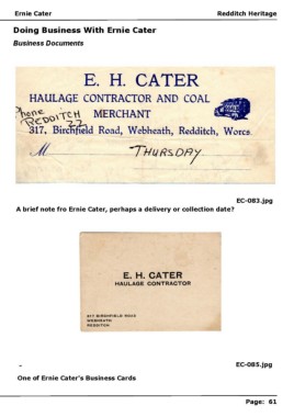 A brief note fro Ernie Cater, perhaps a delivery or collection date?