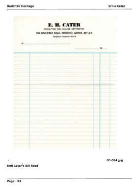 Redditch Heritageedditch Heritage E R Ernie Caterrnie Cater - EC-084.jpg Erni Cater's Bill head P Page: 62age: 62