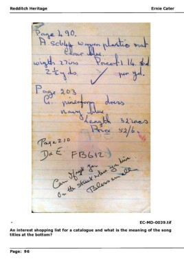 Redditch Heritageedditch Heritage E R Ernie Caterrnie Cater - EC-MD-0039.tif An interest shopping list for a catalogue and what is the meaning of the song titles at the bottom? P Page: 96age: 96