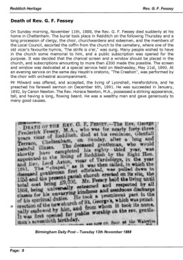 On Sunday morning, November 11th, 1888, the Rev. G. F. Fessey died suddenly at his