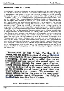 and activities of the church. However, 1884 saw the retirement of Mr Fessey, at the age