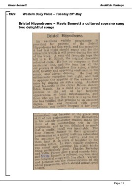 Mavis Bennett Redditch Heritage th - 1924 Western Daily Press – Tuesday 20 May Bristol Hippodrome – Mavis Bennett a cultured soprano sang two delightful songs Page: 11