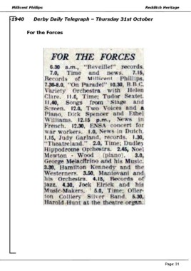 Millicent Phillips Redditch Heritage -1940 Derby Daily Telegraph – Thursday 31st October For the Forces Page: 31