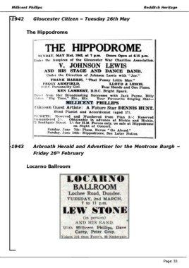 Millicent Phillips Redditch Heritage -1942 Gloucester Citizen – Tuesday 26th May The Hippodrome -1943 Arbroath Herald and Advertiser for the Montrose Burgh – th Friday 26 February Locarno Ballroom Page: 33