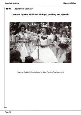 Redditch Heritage Millicent Phillips - 1944 Redditch Carnival Carnival Queen, Millicent Phillips, reading her Speech. (Source: Redditch Remembered by Alan Foxall & Ray Saunders) Page: 38