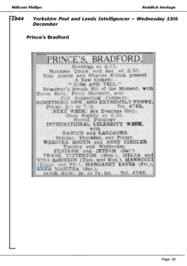 Millicent Phillips Redditch Heritage -1944 Yorkshire Post and Leeds Intelligencer – Wednesday 13th December Prince’s Bradford Page: 39