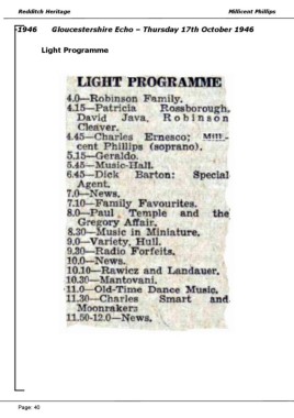 Redditch Heritage Millicent Phillips -1946 Gloucestershire Echo – Thursday 17th October 1946 Light Programme Page: 40