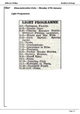 Millicent Phillips Redditch Heritage -1947 Gloucestershire Echo – Monday 27th January Light Programme Page: 41