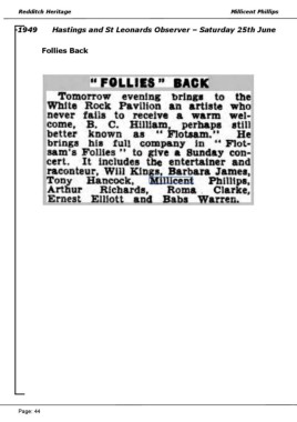 Redditch Heritage Millicent Phillips -1949 Hastings and St Leonards Observer – Saturday 25th June Follies Back Page: 44