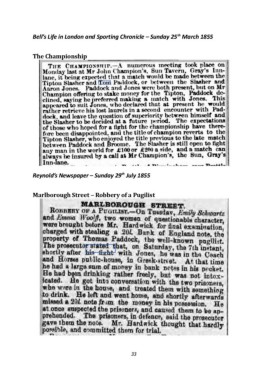 th Bell’s Life in London and Sporting Chronicle – Sunday 25 March 1855 The Championship th Reynold’s Newspaper – Sunday 29 July 1855 Marlborough Street – Robbery of a Pugilist 33