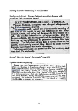 th Morning Chronicle – Wednesday 6 February 1856 Marlborough Street – Thomas Paddock, a pugilist, charged with assaulting Police-constable Murrell th Berrow’s Worcester Journal – Saturday 24 May 1856 Fight for the Championship 36