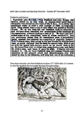 th Bell’s Life in London and Sporting Chronicle – Sunday 20 December 1857 Paddock and Sayers th Tom Sayer knocks out Tom Paddock on June 15 1858 after 21 rounds to win the English Heavyweight Boxing Championship Acknowledgements to www.alamy.com 40