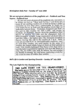 th Birmingham Daily Post – Tuesday 15 June 1858 We are not great admirers of the pugilistic art – Paddock and Tom Sayers – Paddock lost th Bell’s Life in London and Sporting Chronicle – Sunday 18 July 1858 The Late Fight for the Championship 41
