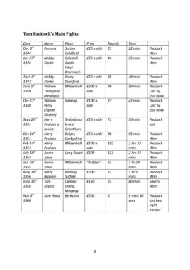 Tom Paddock’s Main Fights