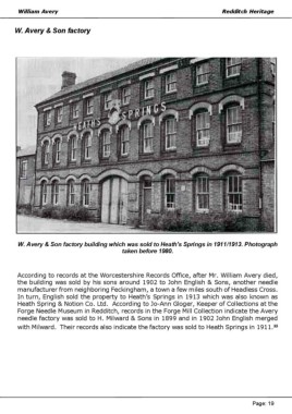 Forge Needle Museum in Redditch, records in the Forge Mill Collection indicate the Avery