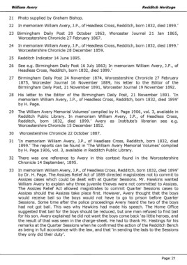 22 In memoriam William Avery, J.P., of Headless Cross, Redditch, born 1832, died 1899.’
