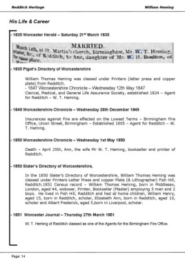 Redditch.1851 Census record – William Thomas Heming, born in Middlesex,