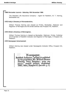 and Proprietor of Redditch Indicator and Registrar of Marriages, 4 Prospect Hill,