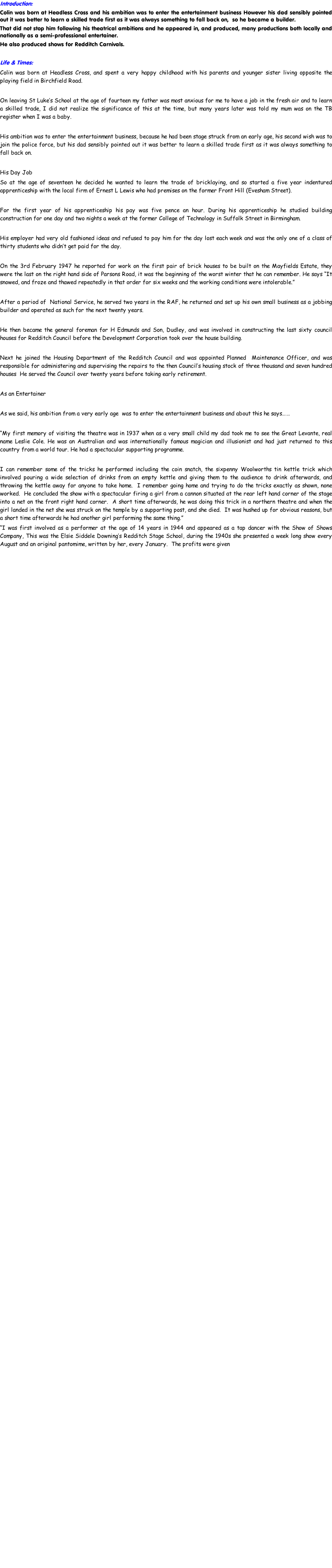 Colin in his Max Miller Tribute act.