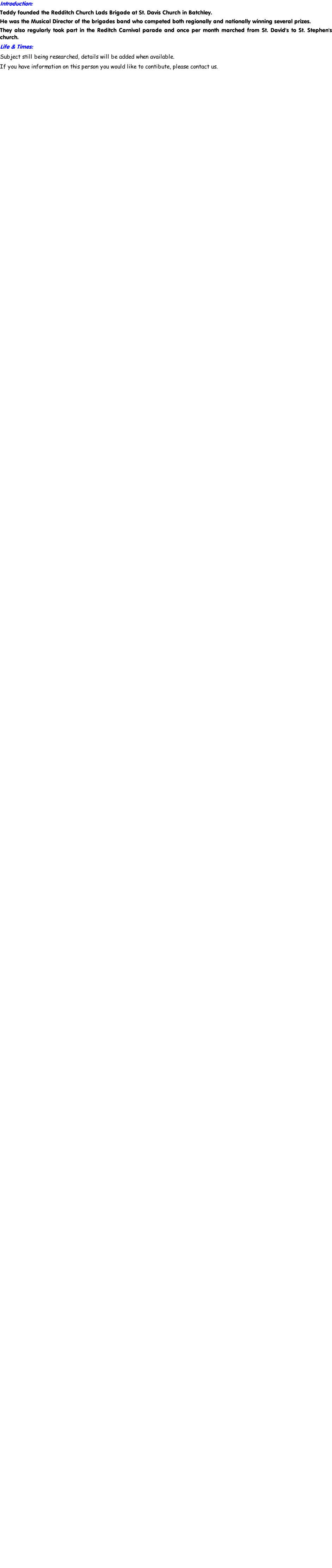Founder & Leader of Redditch Church Lads Brigade