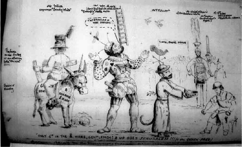 Cartoon issued by the Ratepayers Protection Association 1877. Avery prized this cartoon. Dr. Page added the explanations.