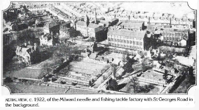 Milward needle and fishing lackle factory with St Georges Road in the background. C 1922
