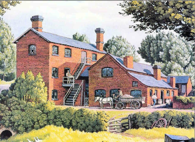 Painting by Norman of Forge Mill water Powered Scouring Mill as it would have looked in the 19th Century.