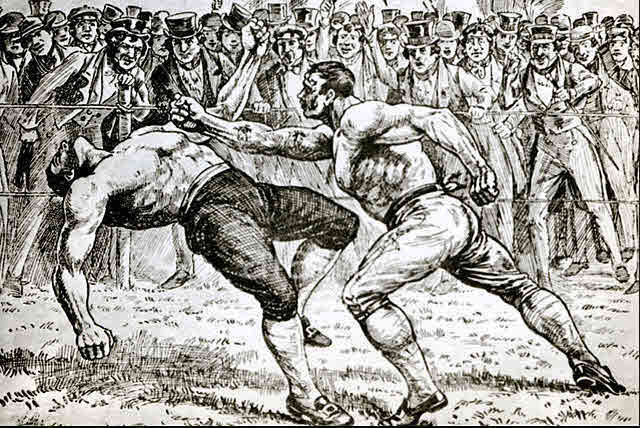 Tom Sayer knocks out Tom Paddock on June 15th 1858 after 21 rounds to win the English Heavyweight Boxing Championship.