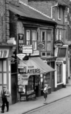 NextBackThe elderly man on left is my grandfather Mr James Bishop. He had probably popped in to the Post Office to get tobacco for his pipe. He was born in Worcester in 1883, his father was a master builder and from an early age he used to help carry bricks. He then delivered meat on horseback and went on to manage Redditch Meat Company butcher's shop on Church Green. Then he worked at 'Terry Springs' in the warehouse for 35 years retiring at 65. He couldn't settle in to retirement so went on to work for Taylor and Johnson's a fishing tackle firm where he stayed until he had to have the lower part of one leg amputated at the age of 95. Unable to bear the thought of being confined indoors he was fitted with an artificial leg so he could still get around on his own. He died aged 97 in 1980.