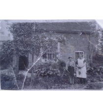 Unknown persons in front of the Farmhouse at Peasant Farm.