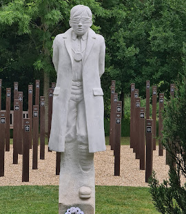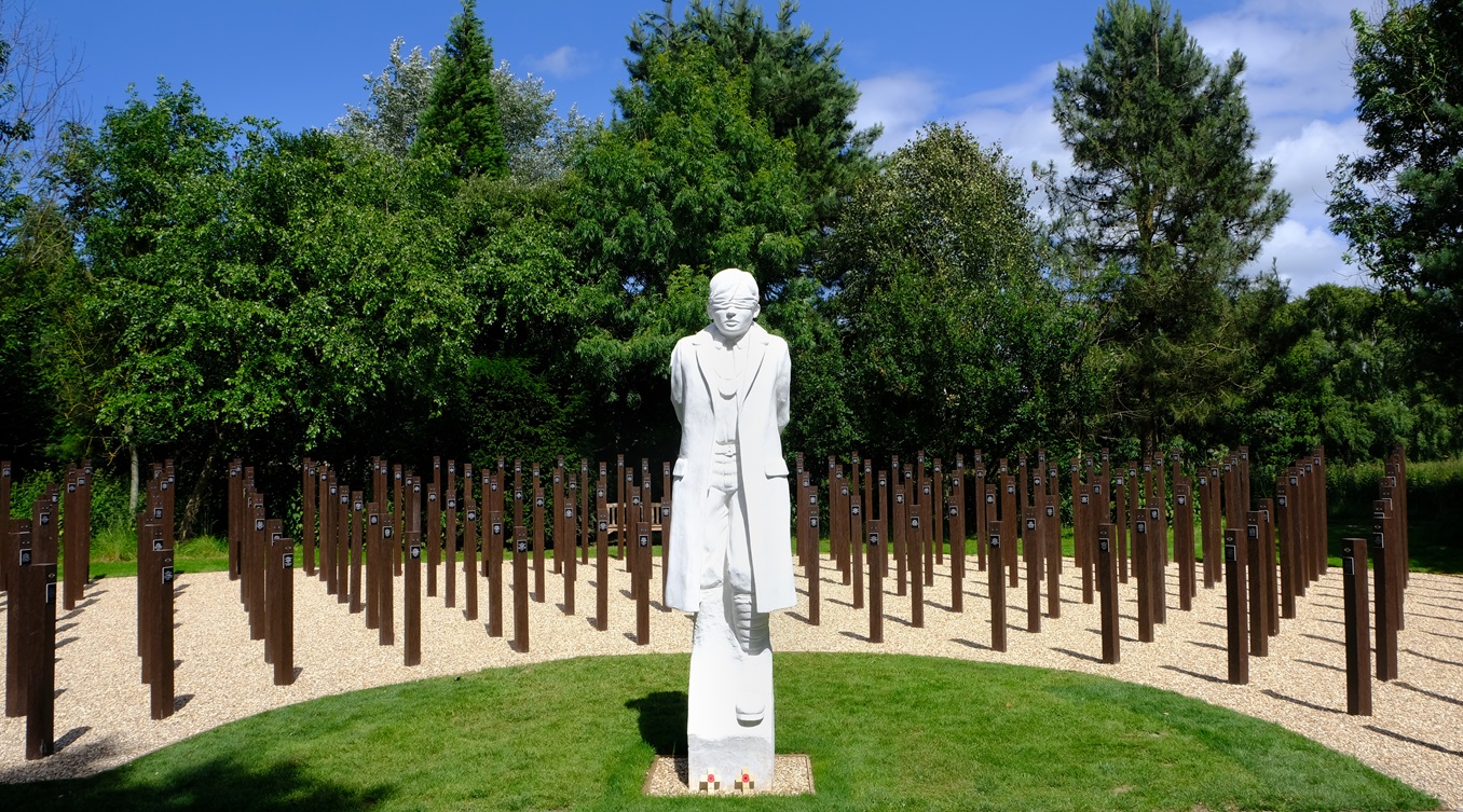 The Shot at Daw Memorial at the National Memorial Arboretum in Staffordshire is deliberately located at the most easterly part of the Arboretum where the sun rises first, Shot at Dawn, first dedicated in 2001.