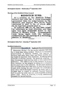 Redditch Local History Society Remembering Redditch Residents & WW1