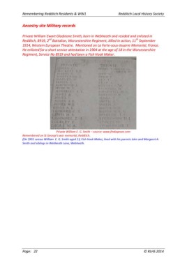 Private William Ewart Gladstone Smith, born in Webheath and resided and enlisted in