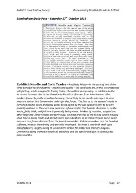 Redditch Local History Society Remembering Redditch Residents & WW1