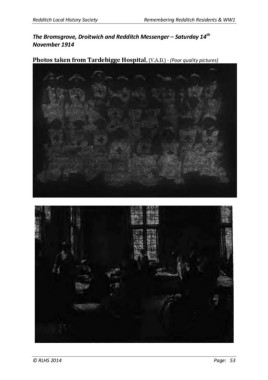 Redditch Local History Society Remembering Redditch Residents & WW1 th The Bromsgrove, Droitwich and Redditch Messenger – Saturday 14 November 1914 Photos taken from Tardebigge Hospital, (V.A.D.) - (Poor quality pictures) © RLHS 2014 Page: 53