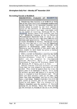 Remembering Redditch Residents & WW1 Redditch Local History Society th Birmingham Daily Post – Monday 30 November 1914 Recruiting Parade at Redditch Page: 58 © RLHS 2014