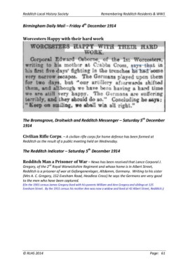 Redditch Local History Society Remembering Redditch Residents & WW1