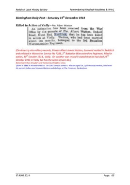 (On Ancestry site military records, Private Albert James Watton, born and resided in Redditch