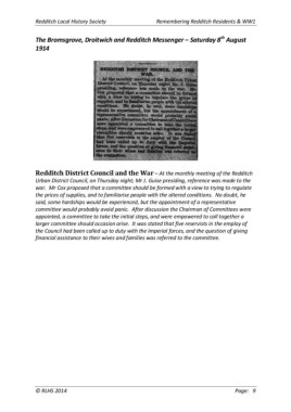 Redditch Local History Society Remembering Redditch Residents & WW1