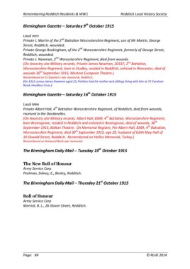 Remembering Redditch Residents & WW1 Redditch Local History Society