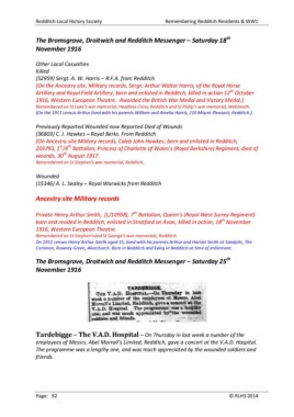 Redditch Local History Society Remembering Redditch Residents & WW1