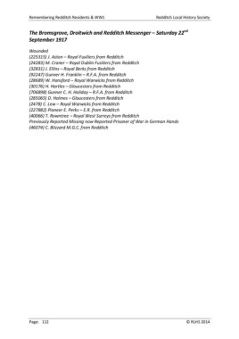 Remembering Redditch Residents & WW1 Redditch Local History Society
