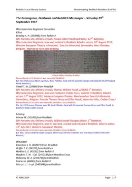 Redditch Local History Society Remembering Redditch Residents & WW1