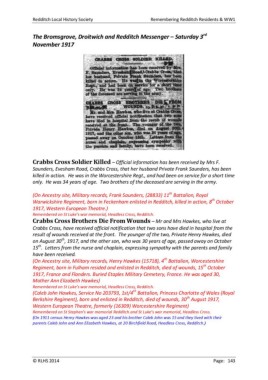 Redditch Local History Society Remembering Redditch Residents & WW1
