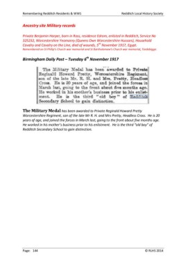Remembering Redditch Residents & WW1 Redditch Local History Society