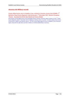 Redditch Local History Society Remembering Redditch Residents & WW1