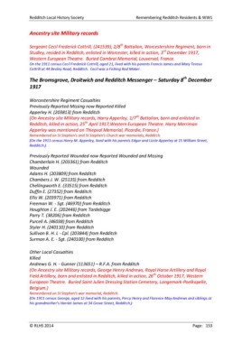 Redditch Local History Society Remembering Redditch Residents & WW1